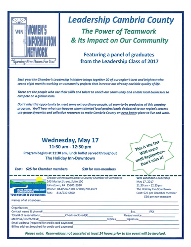 For more information or to register, please see the attached flyer or contact the Chamber of Commerce at 536-5107 or chamber@johnstownchamber.com